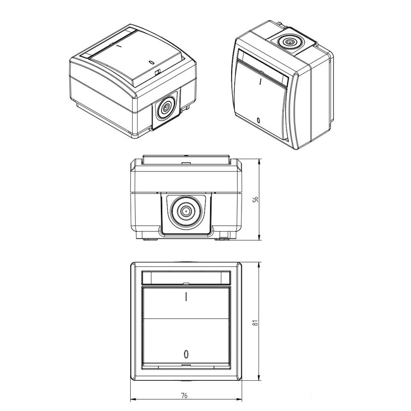 GALATEA 5333-02 IP44 Spínač dvoupólový č.2 (bílá). Rozteč kotvících bodů (výška x šířka ): 60x50mm.