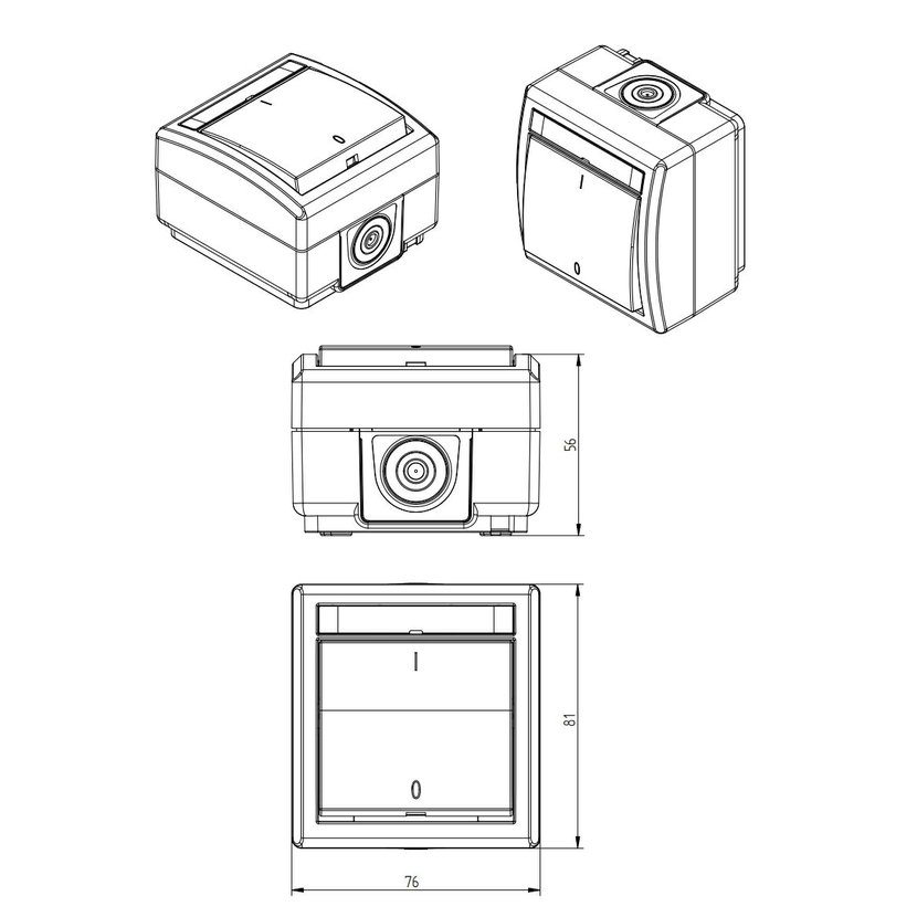 GALATEA 5333-02 IP44 Spínač dvoupólový č.2 (bílá). Rozteč kotvících bodů (výška x šířka ): 60x50mm.