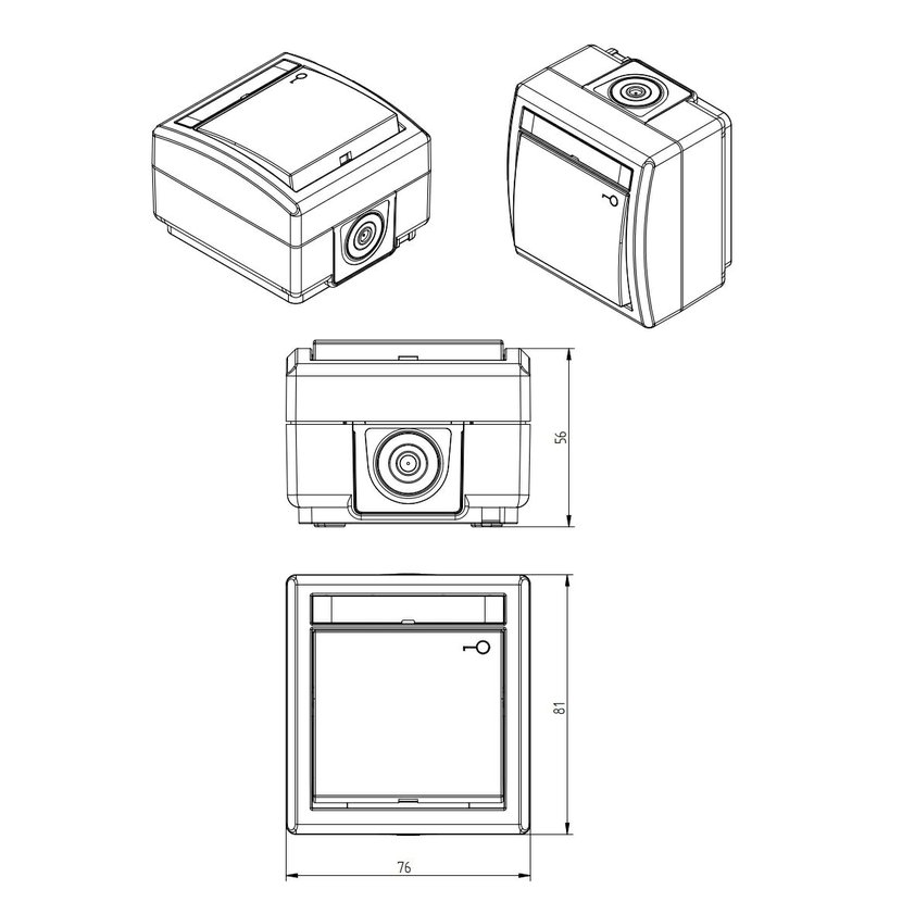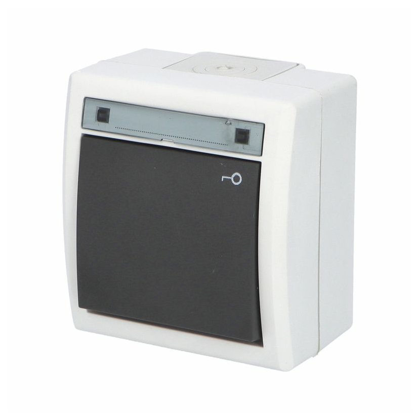 ATLAS 2K 19079-09 IP55 Tlačítko symbol "světlo" č.1/0, na povrch, antracitové RAL 7016. Rozteč kotvících bodů (výška x šířka ): 61x49mm.