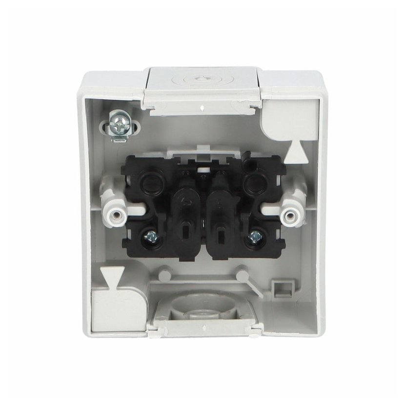 ATLAS 19079 IP55 Tlačítko symbol "světlo" č.1/0, na povrch, šedé. Provedení v šedé barvě RAL 7035 a ovládacím prvkem v barvě RAL 7043. Rozteč kotvících bodů (výška x šířka ): 61x49mm.
