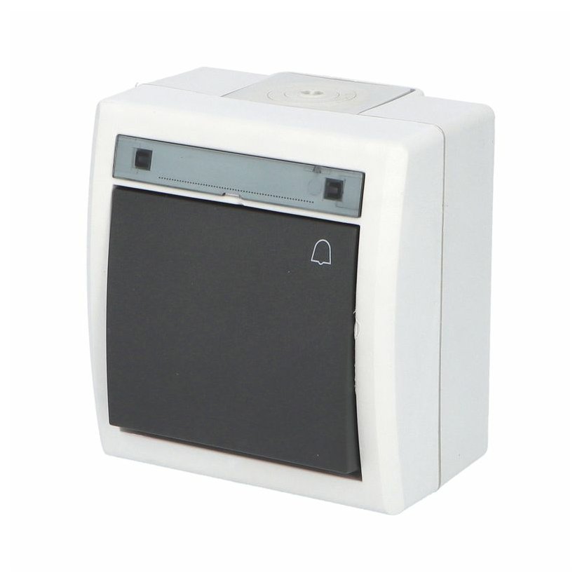 ATLAS 2K 19077-09 IP55 Tlačítko symbol "zvonek" č.1/0, na povrch, antracitové RAL 7016. Rozteč kotvících bodů (výška x šířka ): 61x49mm.