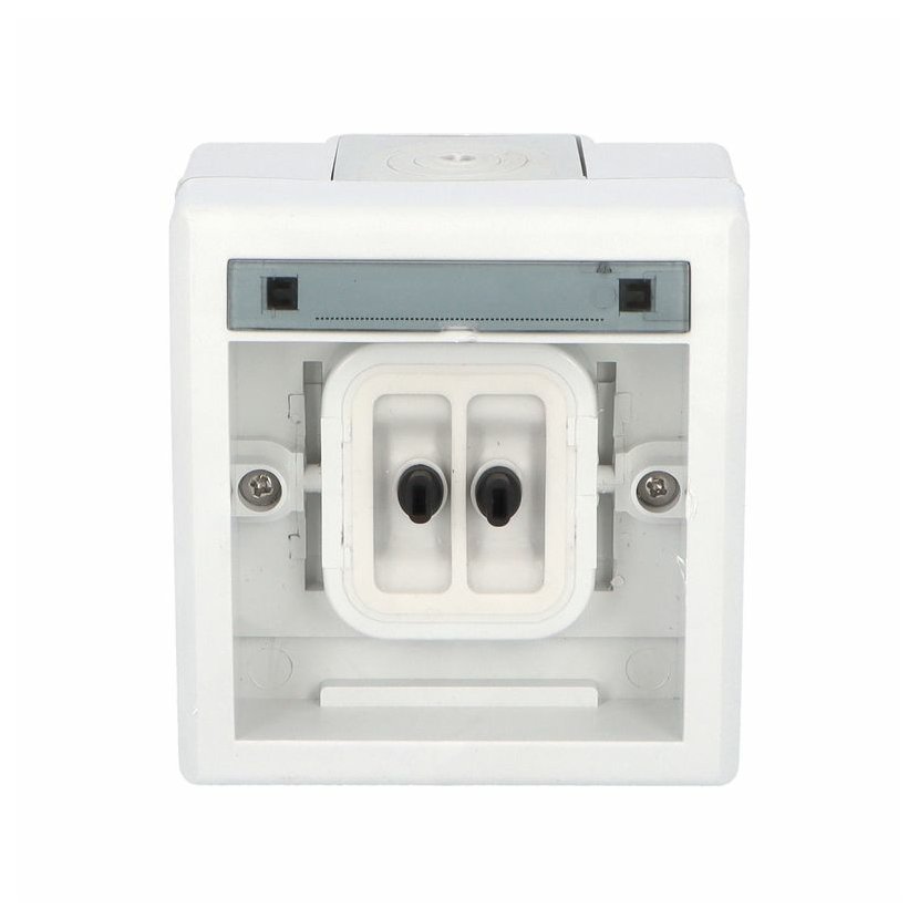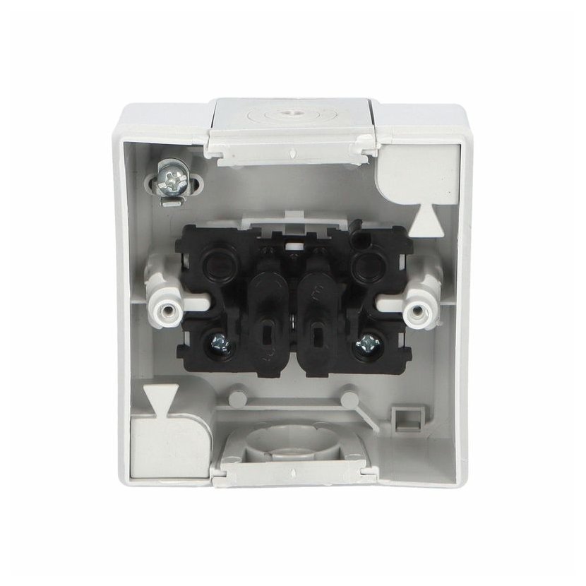 ATLAS 19079 IP55 Tlačítko symbol "světlo" č.1/0, na povrch, šedé. Provedení v šedé barvě RAL 7035 a ovládacím prvkem v barvě RAL 7043. Rozteč kotvících bodů (výška x šířka ): 61x49mm.