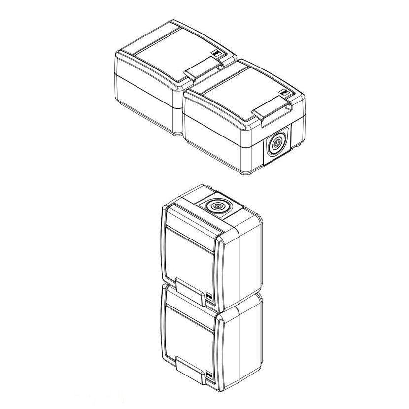 ATLAS 2K 19083-07 IP55 Zásuvka 2x 2P+PE, 2-násobná vodorovná s ochr. kolíkem, na povrch, šedá. Provedení v šedé barvě RAL 7035 a ovládacím prvkem v barvě RAL 7016. Rozteč kotvících bodů (výška x šířka…