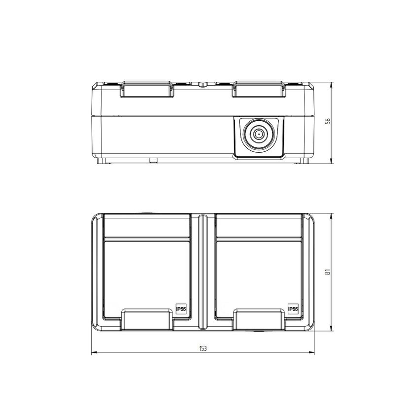 ATLAS 2K 19083-07 IP55 Zásuvka 2x 2P+PE, 2-násobná vodorovná s ochr. kolíkem, na povrch, šedá. Provedení v šedé barvě RAL 7035 a ovládacím prvkem v barvě RAL 7016. Rozteč kotvících bodů (výška x šířka…