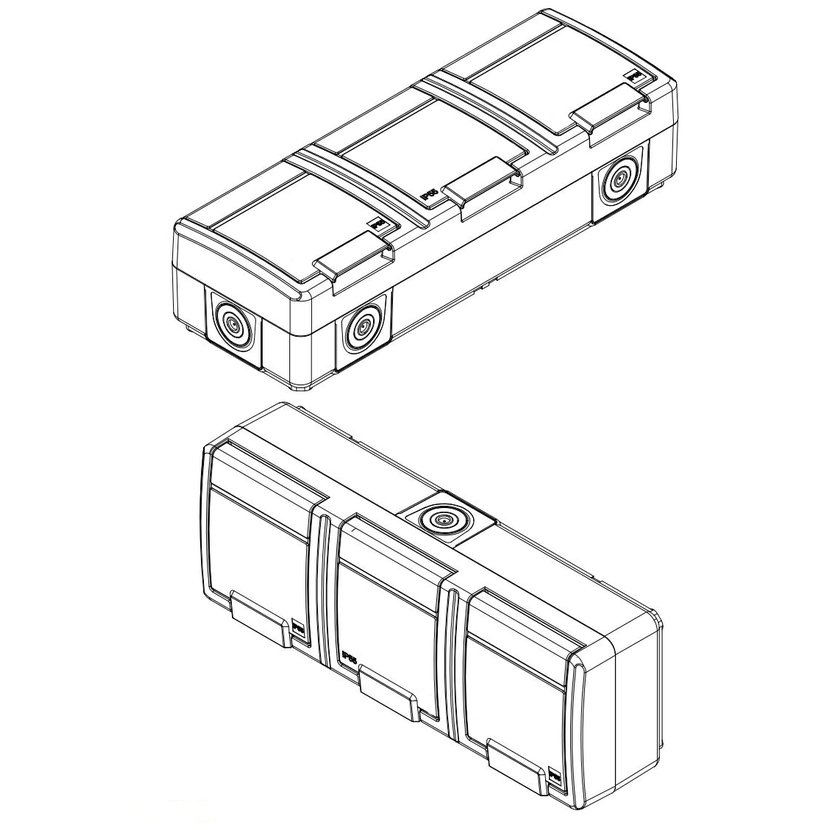 ATLAS 2K 19084-07 IP55 Zásuvka 3x 2P+PE, 3-násobná vodorovná s ochr. kolíkem, na povrch, šedá. Provedení v šedé barvě RAL 7035 a ovládacím prvkem v barvě RAL 7016. Rozteč kotvících bodů (výška x šířka…