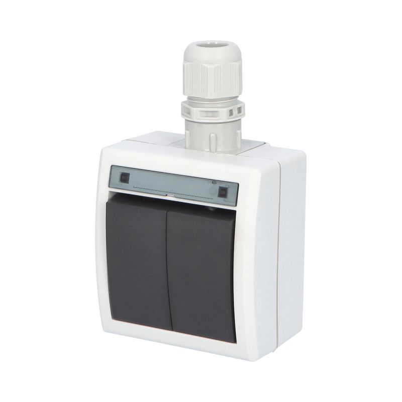 ATLAS 19076 IP55 Spínač sériový č.5, na povrch, šedý. Provedení v šedé barvě RAL 7035 a ovládacím prvkem v barvě RAL 7043. Rozteč kotvících bodů (výška x šířka ): 61x49mm.