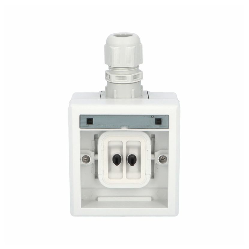 ATLAS 2K 19079-07 IP55 Tlačítko symbol "světlo" č.1/0, na povrch, šedé. Provedení v šedé barvě RAL 7035 a ovládacím prvkem v barvě RAL 7016. Rozteč kotvících bodů (výška x šířka ): 61x49mm.