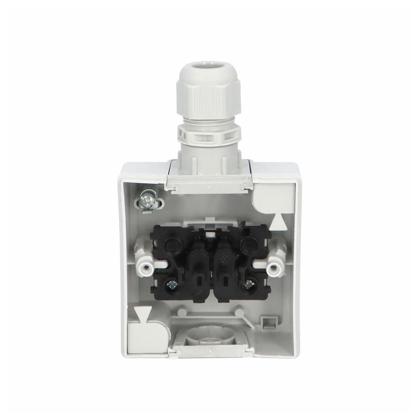 ATLAS 19079 IP55 Tlačítko symbol "světlo" č.1/0, na povrch, šedé. Provedení v šedé barvě RAL 7035 a ovládacím prvkem v barvě RAL 7043. Rozteč kotvících bodů (výška x šířka ): 61x49mm.