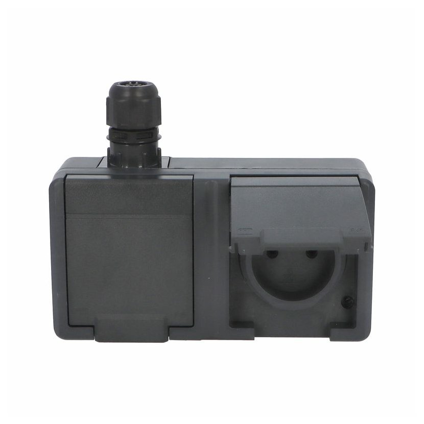 ATLAS 2K 19094-07 IP55 Přepínač č.6 + zásuvka 2x 2P+PE, 2-násobná vodorovně s ochr. kolíkem, na povrch, šedý. Provedení v šedé barvě RAL 7035 a ovládacím prvkem v barvě RAL 7016. Rozteč kotvících bodů…