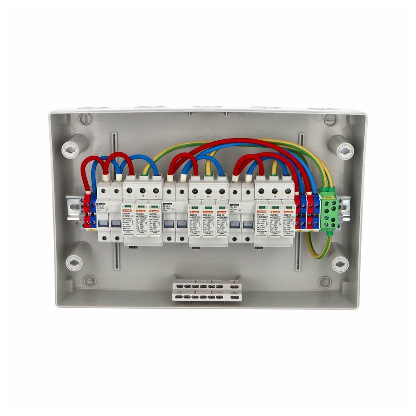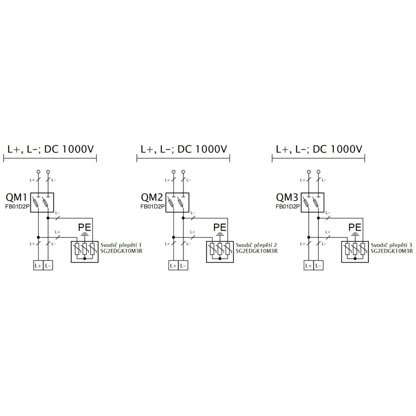 Fotovoltaická rozvodnice (rozváděč nízkého napětí) SolarBOX fr016L IP65 chránící DC vedení o max. napětí 1000V, pro tři stringy. Osazena jistícími a ochrannými prvky: 3 x pojistkový odpojovač 1000V DC, 2P 10x38, bez pojistek, 3 x svodič přepětí LOVATO 1000V DC typ I+II, 6x RSA svorka, použité pouzdro: 39181 - celkem k dispozici 18mod. míst, rozměry: 274x426x131mm, plastová, materiál ABS, IK08, zkouška žhavou smyčkou 650°C, bezhalogenová a UV odolná, montáž na povrch, barva: světle šedá, rozsah teplot -25°C + 70°C, aplikované normy: ČSN EN 61439-2 ed. 2, balení: 1ks (fólie), PE svorkovnice součástí (2x16 mm2 + 12x10 mm2) / N svorkovnice součástí (2x16 mm2 + 12x10 mm2), hladké boky (stěny) - pro vyvrtání otvoru a osazení vývodkou (vrchní a spodní strana má stěny s předlisovanými vstupy pro vyvrtání vstupního otvoru a následného osazení příslušnou vývodkou), dodáno s průvodní dokumentací: štítkem rozváděče, návodem pro obsluhu a montáž, krycím listem (charakteristiky rozhraní), protokolem o kusové zkoušce, ES prohlášením o shodě, schématem zapojení a zkouškou oteplení pro rozváděče nízkého napětí. Pro montáž na hořlavé podklady je nutné použít nehořlavou podložku. Recyklační poplatek je zahrnut v ceně výrobku.