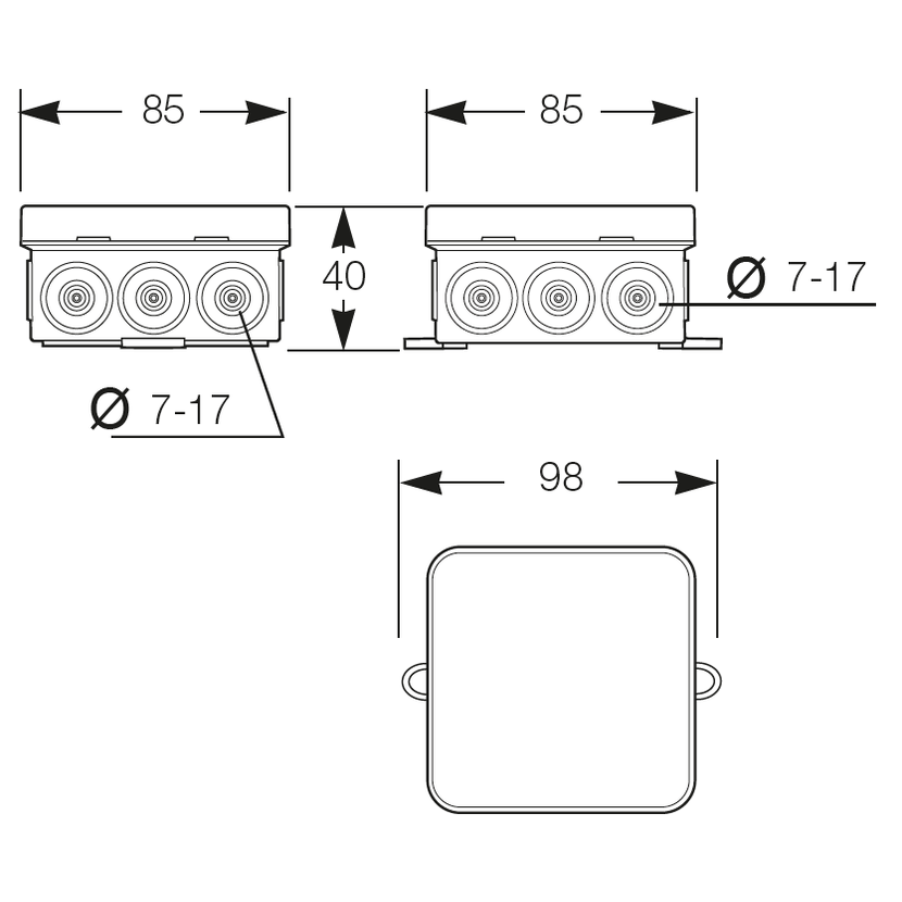 Parametry produktu Krabice K12 IP55 rozbočovací, s naklapávacím víčkem, 85x85x40mm