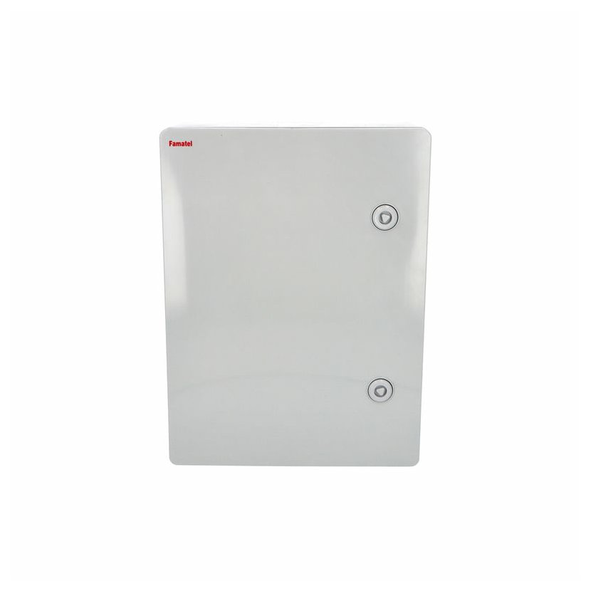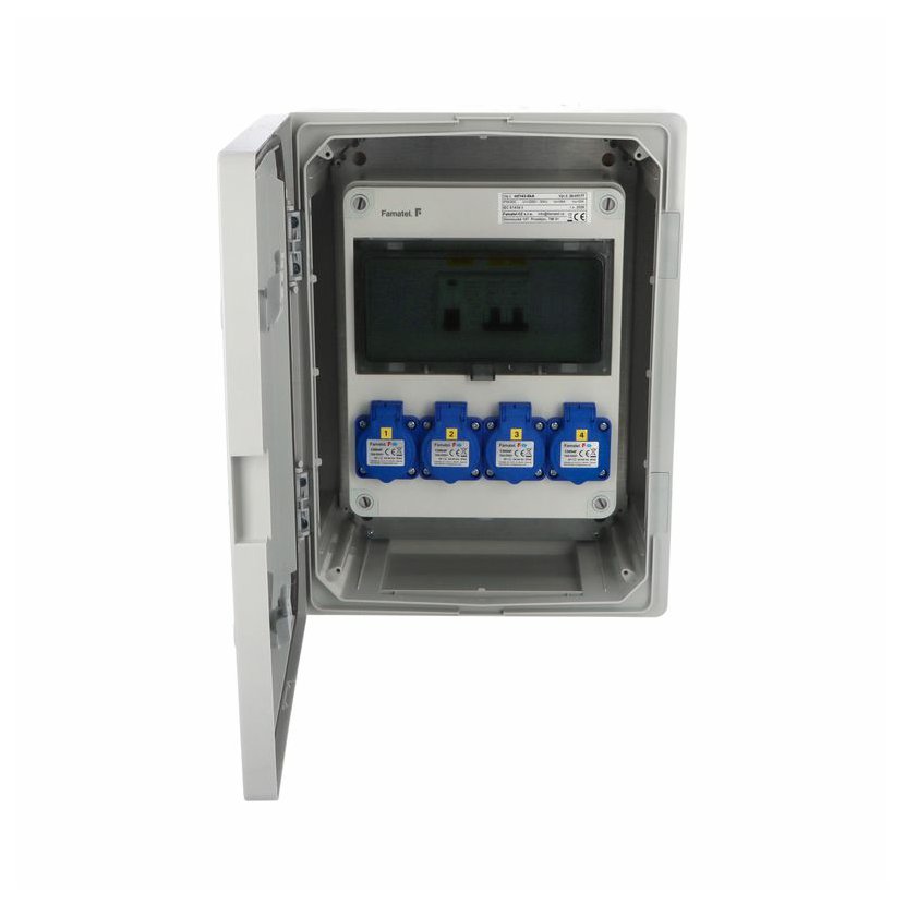 MFBOX (rozváděč nízkého napětí) mf143-6kA-MFF40000000.1 /5810/39134 IP54 jištěný s chráničem 25/2/003-A, zásuvky 4x230V/16A (s ochranným kolíkem dle ČSN), jistící přístroje FAMATEL 6kA: 2xKBF1B16 B16/1, AUR8225A030 25/2/003-A (citlivost na reziduální proud 30mA), použité pouzdro: 5810 - celkem k dispozici 10mod. míst, rozměry: 270x220x120mm, plastová, materiál ABS, IK08, zkouška žhavou smyčkou 650°C, bezhalogenová a UV odolná, montáž na povrch, barva: světle šedá, rozsah teplot -25°C +85°C, aplikované normy: IEC 61439-3 (Rozváděče nízkého napětí - Část 3: Rozvodnice určené k provozování laiky (DBO), balení: 1ks (karton), zásuvky na 230V/16A s ochranným kolíkem dle ČSN, polykarbonátové okénko, jistící prvky EATON, PE svorkovice součástí, N svorkovice součástí, hladké stěny pro volitelné vyvrtání vstupního otvoru a následné osazení příslušnou vývodkou (2xM20x1,5), dodáno s průvodní dokumentací: štítkem rozváděče, návodem pro obsluhu a montáž, krycím listem (charakteristiky rozhraní), protokolem o kusové zkoušce, ES prohlášením o shodě, schématem zapojení a zkouškou oteplení pro rozváděče nízkého napětí. Osazena v plastové skříni IP65, rozměry: 400x300x165mm (výška x šířka x hloubka), na ocelové montážní desce. Plné dveře - otevírání plastovým trojhranem, možnost změnit směr otevírání, hladké boky. Sada vnějších úchytů zaručuje rychlou a bezproblémovou instalaci. Recyklační poplatek je zahrnut v ceně výrobku.