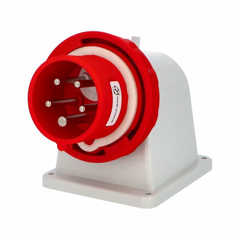 Průmyslová přívodka se změnou fáze 13324 IP66-67/400V/16A/5P 6h splňující požadavky norem IEC/EN 60309-1, IEC/EN 60309-2. Změna sledu fází L2 - L3 pootočením otočného dílu pomocí plochého šroubováku o 180°. Rychlou montáž gumového kabelu zajistí kovová rychlospona. Kabelová šroubová vývodka zaručuje vysokou odolnost proti vytrhnutí kabelu a daný stupeň krytí (kód IP).