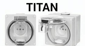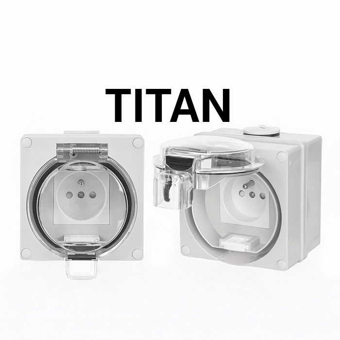 Zásuvky TITAN jsou speciálně navrženy do extrémních povětrnostních podmínek. Provedení v šedé barvě RAL 7035 a ovládacím prvkem v barvě RAL 7043 a odolnost proti mechanickým nárazům IK07 předurčuje použití ve výrobních provozech, montážních halách, garážích, dílnách apod. Kompaktní a zároveň masivní pouzdro z odolného plastu zaručují dlouhou životnost.