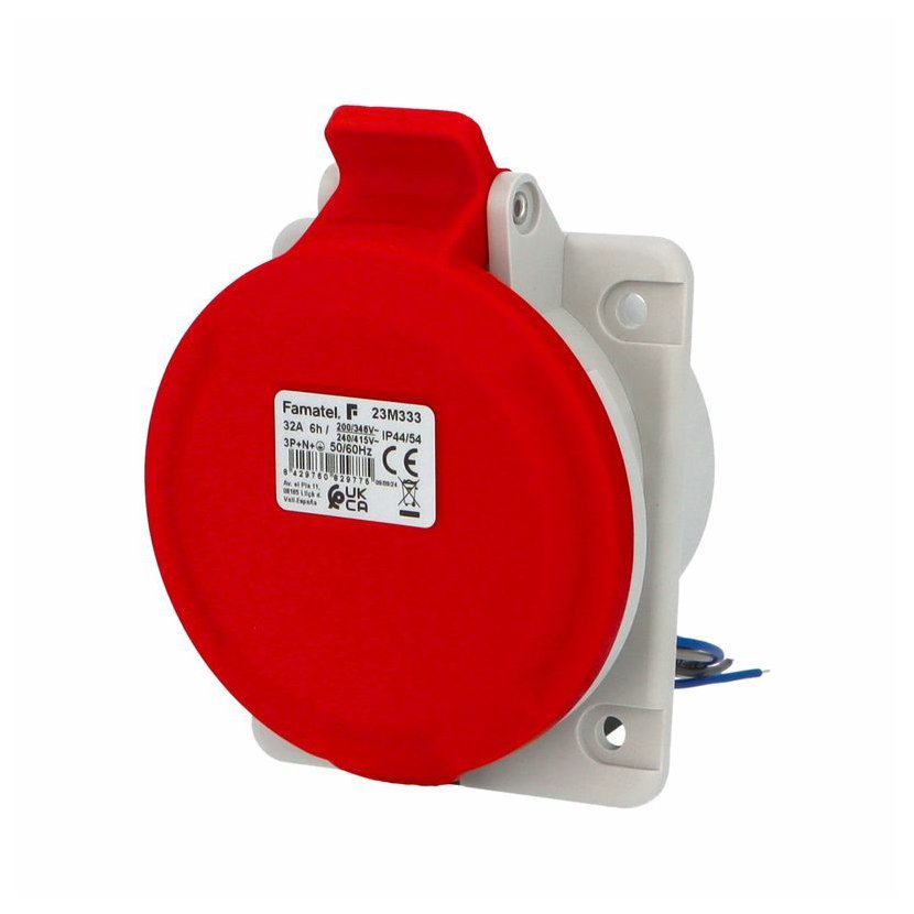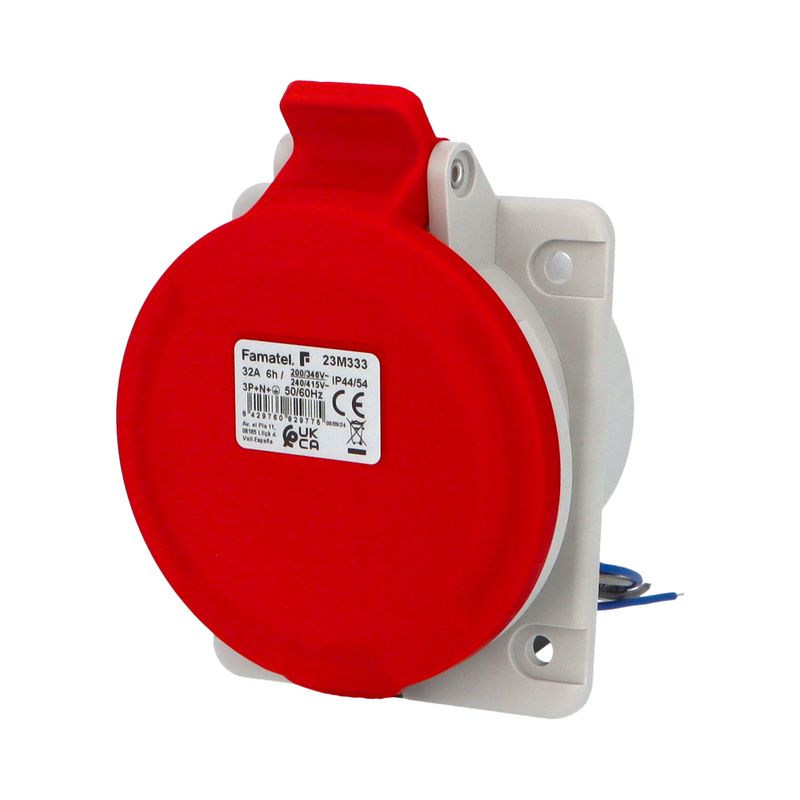 Průmyslová zásuvka 23M333 s mikrospínačem splňuje požadavky norem IEC 60309-1; IEC 60309-2; EN 61058-1-1:2016, EN IEC 61058-1:2018. Mikrospínač NC/ NO kontrolujte stav připojení a odpojení zásuvek z libovolného místa instalace. Mikrospínač se aktivuje po zasunutí vidlice do zásuvky. Lze jej použít k vytvoření elektrického bezpečnostního blokování nebo k vysílání signálů do jiných zařízení. Délka kabelu mikrospínače 50 cm.