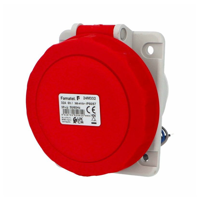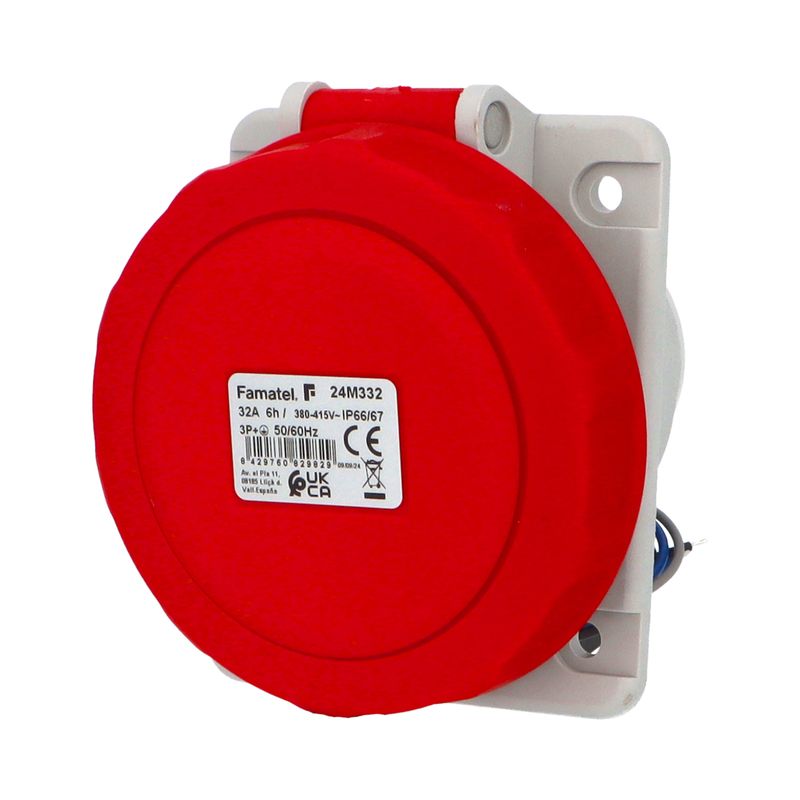 Průmyslová zásuvka 24M332 s mikrospínačem splňuje požadavky norem IEC 60309-1; IEC 60309-2; EN 61058-1-1:2016, EN IEC 61058-1:2018. Mikrospínač NC/ NO kontrolujte stav připojení a odpojení zásuvek z libovolného místa instalace. Mikrospínač se aktivuje po zasunutí vidlice do zásuvky. Lze jej použít k vytvoření elektrického bezpečnostního blokování nebo k vysílání signálů do jiných zařízení. Délka kabelu mikrospínače 50 cm.